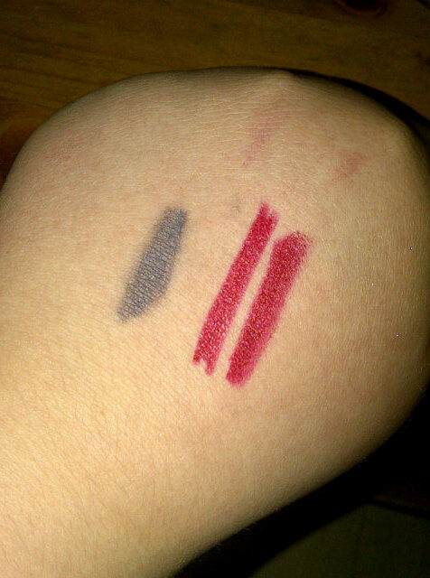 Und zwar hab ich einmal einen roten Lip Liner, einen grauen Kajal und einen gebackenen mauve-farbenen Lidschatten gekauft.